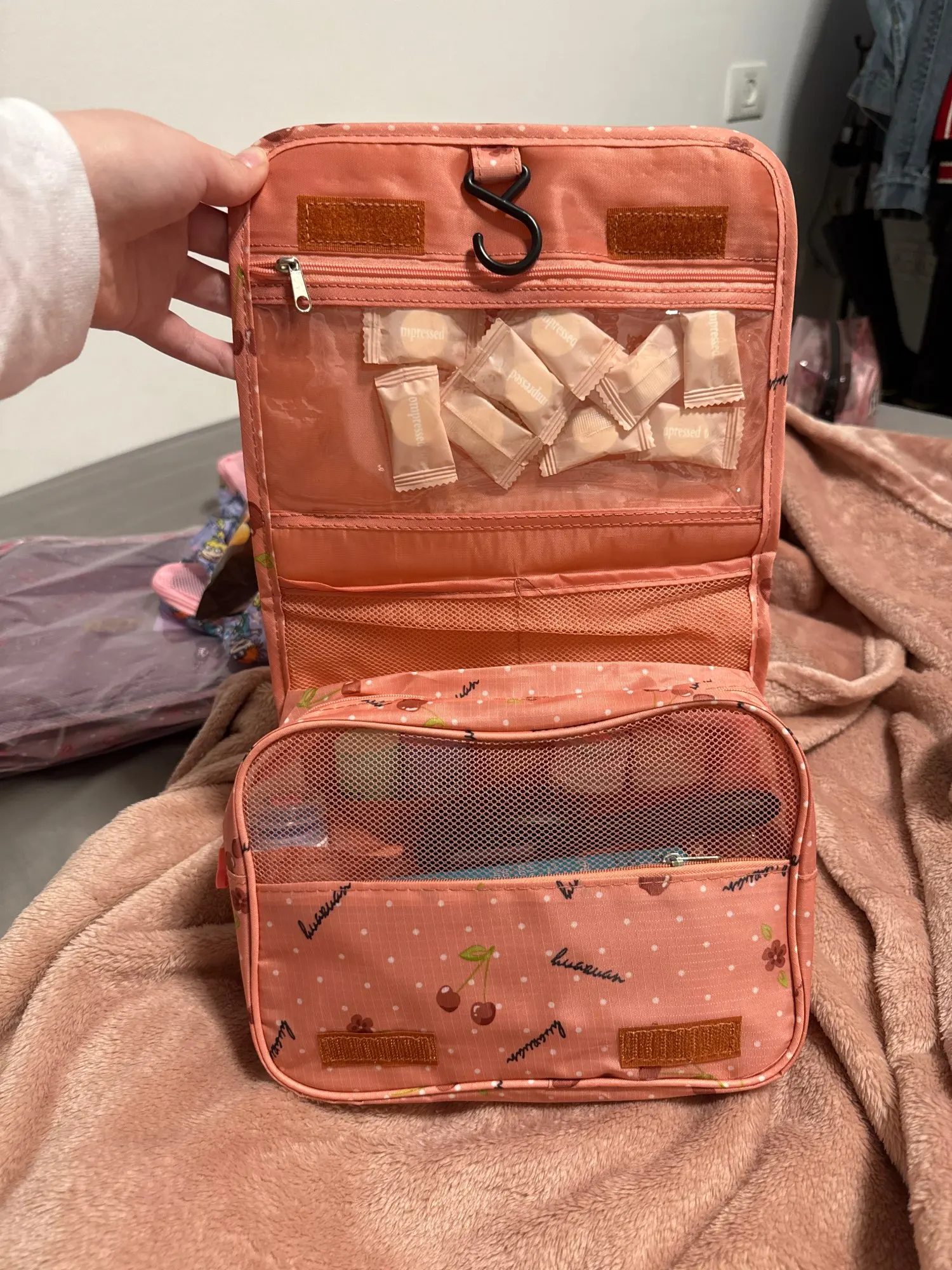 Foldable Travel Toiletry Bag Cosmetic Bag Women Travel Pouch Waterproof Toiletries Beauty Organizer Ladies Bathroom Makeup Storage Bag With Hook Wash