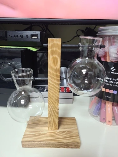 Very cute, as described. Is well made and the wooden stand can easily support the glass. Arrived in a protective foam case.